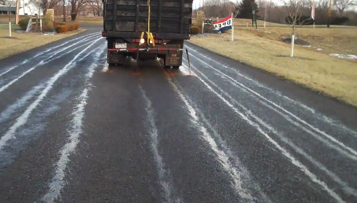 This refers to the application of pre-wetted salt or brine to enhance the grip between tyres and the road surface.